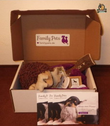 Hallo ihr Lieben! Meine Pfote ist wieder fast heile, deswegen hab ich meine Schuhe jetzt erstmal vor die Tür gestellt. Die müssen geputzt werden. Heute Morgen stand ein Päckchen für mich daneben! Ich glaub‘, der Mann mit dem dicken Bauch hat sich im Tag vertan. Denn Nikolaustag ist erst nächste Woche, das weiß ich genau! Aber egal, über Geschenke freu‘ ich mich ja jederzeit. Deswegen hab ich die Post von Family Pets auch gleich reingeschleppt, aufgemacht und genau unter die Lupe genommen.