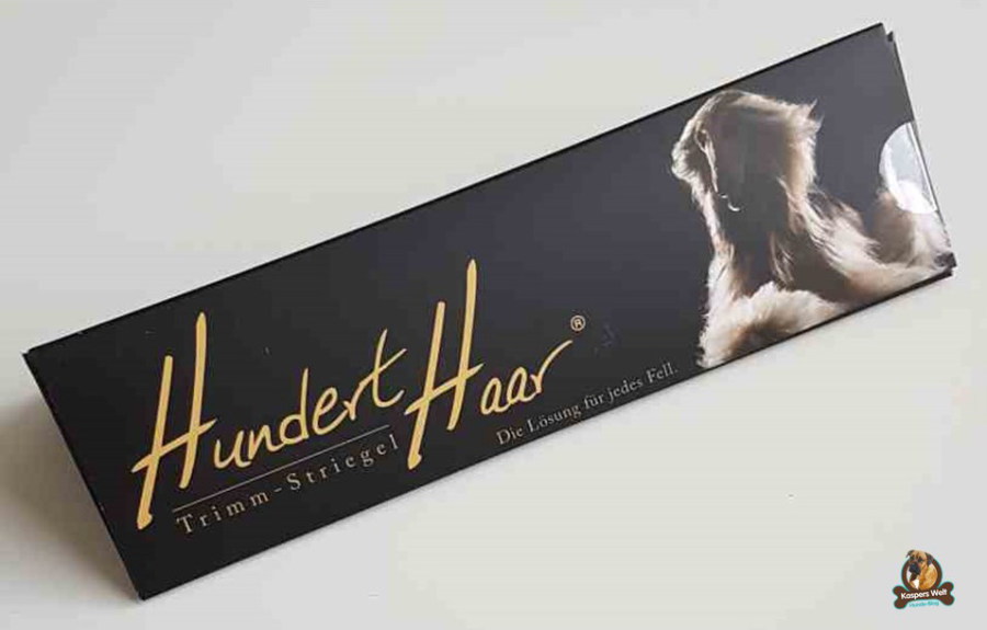 Na jedenfalls haben wir jetzt mal wieder was zum Testen bekommen. Und zwar den Trimm-Striegel mit dem schönen Namen „HundertHaar“. Dieser Striegel entfernt bis zu 3x mehr Unterwolle, wau! Filzknoten habe ich bei meinem kurzen Fell zwar nicht, aber auch mit denen wird er spielend leicht fertig! Auch widerspenstiges Haar wird leicht gebändigt.