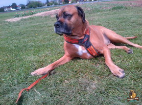 Hallo Leute, endlich habe ich ein neues Gassi-Outfit bekommen! Nach einem neuen Geschirr haben wir lang gesucht, das ist bei einem XXL-Hund wie mir nämlich gar nicht so einfach zu finden. Viele Geschirre passen mir gar nicht oder sind – auf meine Größe eingestellt – dann oft nur noch ein Wirrwarr aus dünnen Striemen. Die würden im Leben nicht halten, wenn ich mich mit meinen 45 Kilo voll reinhängen würde. Und das tue ich manchmal, ganz zum Pech für mein Frauchen. Denn die hat dann alle Hände voll zu tun, um mich zu halten. Und auch dafür braucht sie eine ordentliche und robuste Leine!